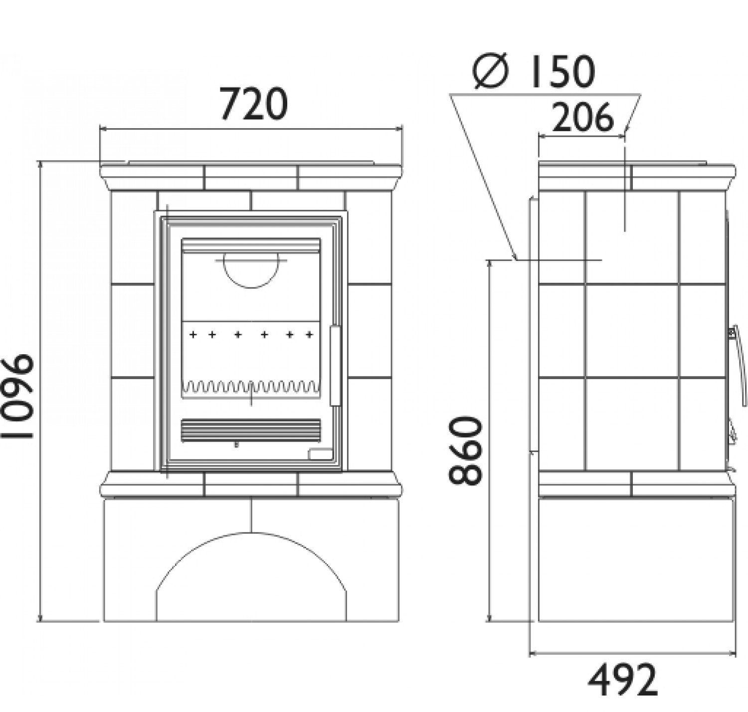 Кафельная печь Regina K белый цоколь вставка чугун