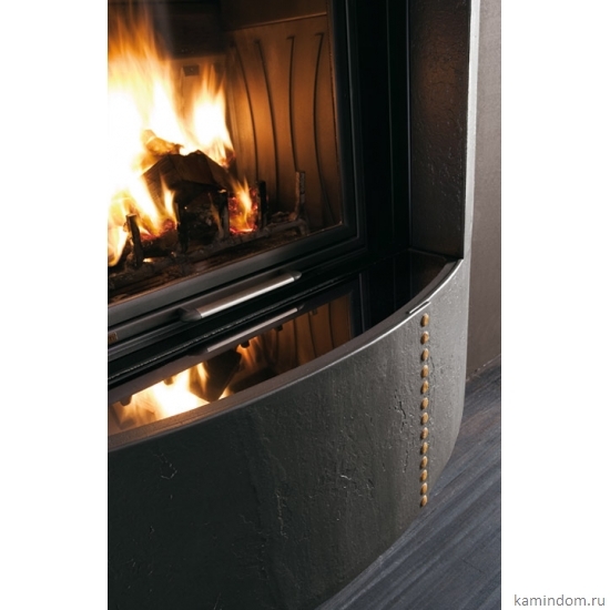 Пристенный камин из декоративного материала, окрашенного с помощью натуральных оксидов. Состоит из четырех элементов, изготовленных из высокоэффективного цемента, чтобы передать эффект состаренности. Каминная решетка из стали.