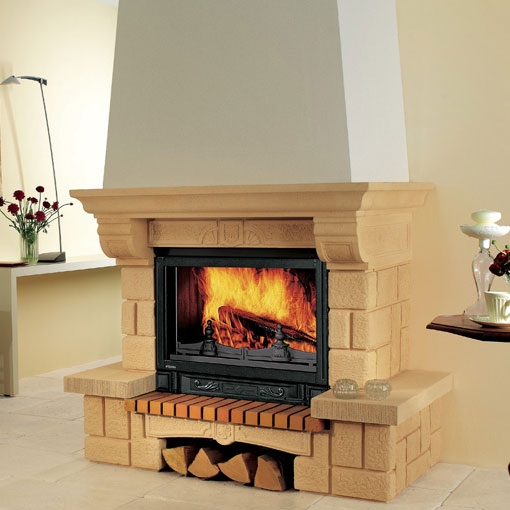 Камин из камня Edelroc®. Знаменитый французский стиль «рустик». Модель, устанавливаемая вплотную к стене.