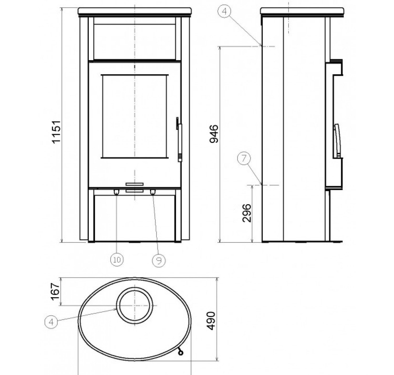 - Подключение дымохода: верхнее/заднее.