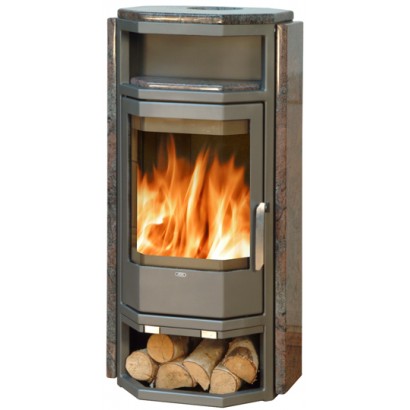 Внизу, под топкой, расположена удобная ниша для хранения дров, а в верхней части печи предусмотрена ниша для разогрева пищи. У этой печи высокий КПД.