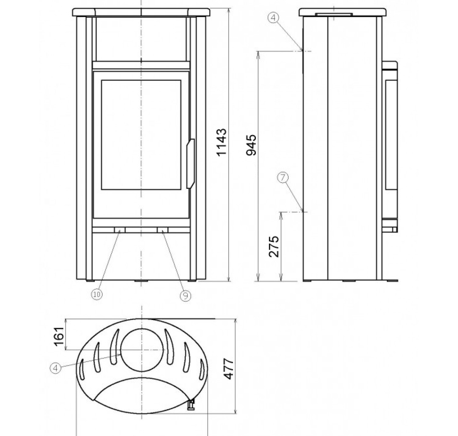 Дровяная печь Pori 7 из сварных листов высоколегированной стали, отвечающая самым строгим стандартам. Изготовлена она с применением самых современных технологий и предназначена для низкоэнергетических домов, возможность забора воздуха для горения извне здания. Круглое стекло увеличивает обзор огня. В изготовлении печи используется специальная керамика, устойчивая к перепадам температур и тепловым ударам. В конструкции печи имеется плита, что дает возможность разогревать и готовить пищу. Позволяет отапливать помещения объемом до 160 куб.м.
