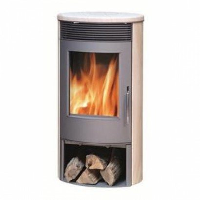 Корпус данной печи цилиндрической формы, поэтому она может стоять в углу или быть просто у стены. В качестве материала изготовления камина использовалась листовая сталь. Облицовка может быть из природного камня талькохлорита либо из песчаника.