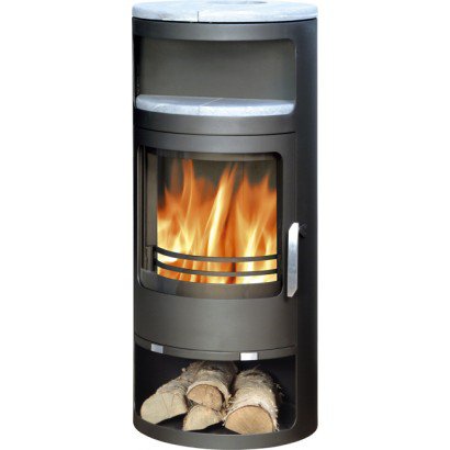 Для облицовки боковой поверхности выбран мыльный камень, а верха — талькохлорит, уникальный природный камень с высокими теплонакопительными свойствами. Верхняя часть имеет небольшую открытую нишу — приготовить полноценный обед на ней нельзя, но подогреть еду — вполне. Нижняя часть приспособлена для хранения небольшой порции дров.