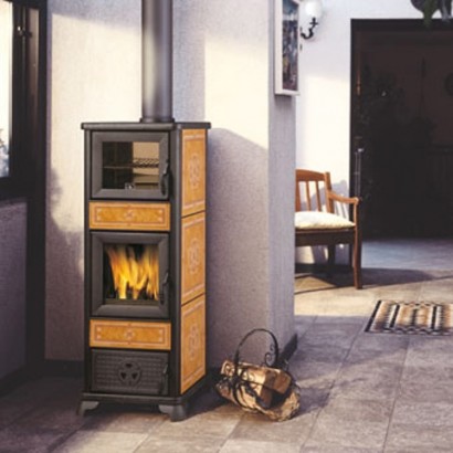 Отопительная печь Dafne (EdilKamin) с духовкой. Корпус отопительной печи - сталь, внутри - чугун, вставки из керамики, духовка, съемные кольца конфорки.