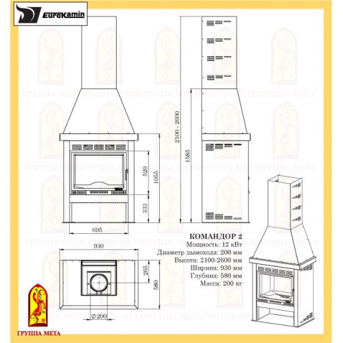 В дверце печи камина Командор 2 вставлено жаропрочная стеклокерамика японского производства. Система самоочистки стекла за счет подачи воздуха на него позволит стеклу оставаться чистым. Для уплотнения разъемных элементов используется термостойкий шнур. Кожух регулируется по высоте.