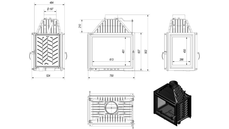 - Диаметр дымохода, (мм) 200