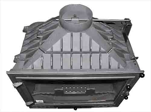 Чугунная топка серии «bloque» с плоским стеклом, ограничитель дров, оригинальный дизайн внутренней части, удобный зольник.