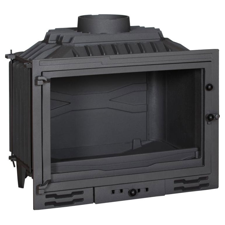 Топка Ferlux C-21, имеет боковое открытие дверцы, регулировку подачи воздуха на горение. Чугунная топка с плоским стеклом, удобным зольником, ограничителем для дров, оригинальным дизайном внутренней части.