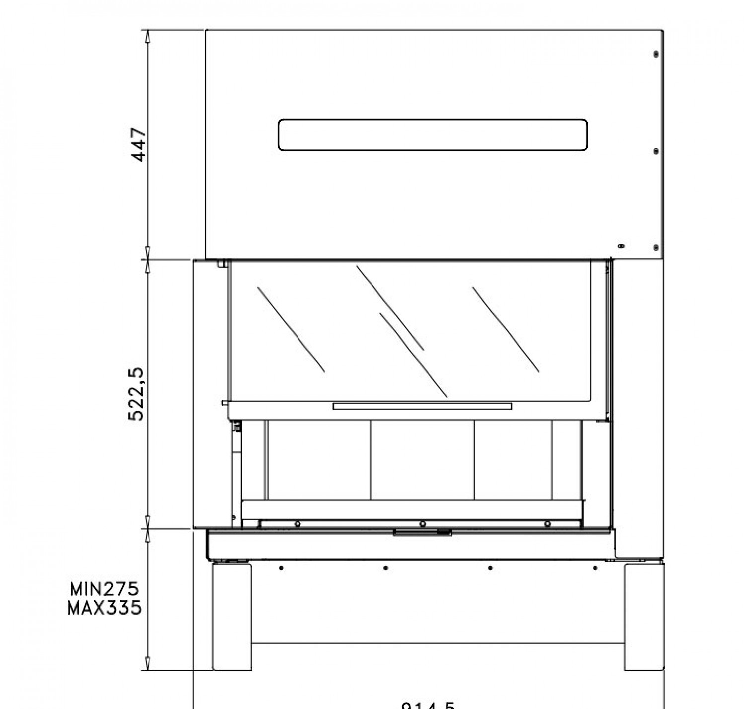 Стальная каминная топка с боковым стеклом. Дверца с подъемом вверх.