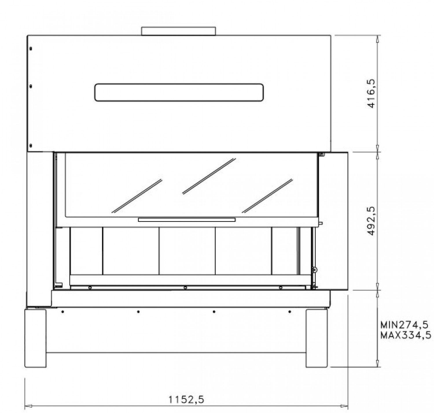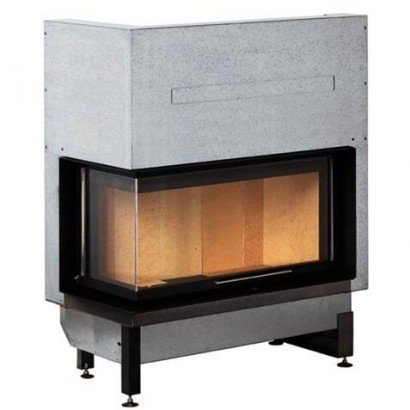 Стальная каминная топка с боковым стеклом. Дверца с подъемом вверх.