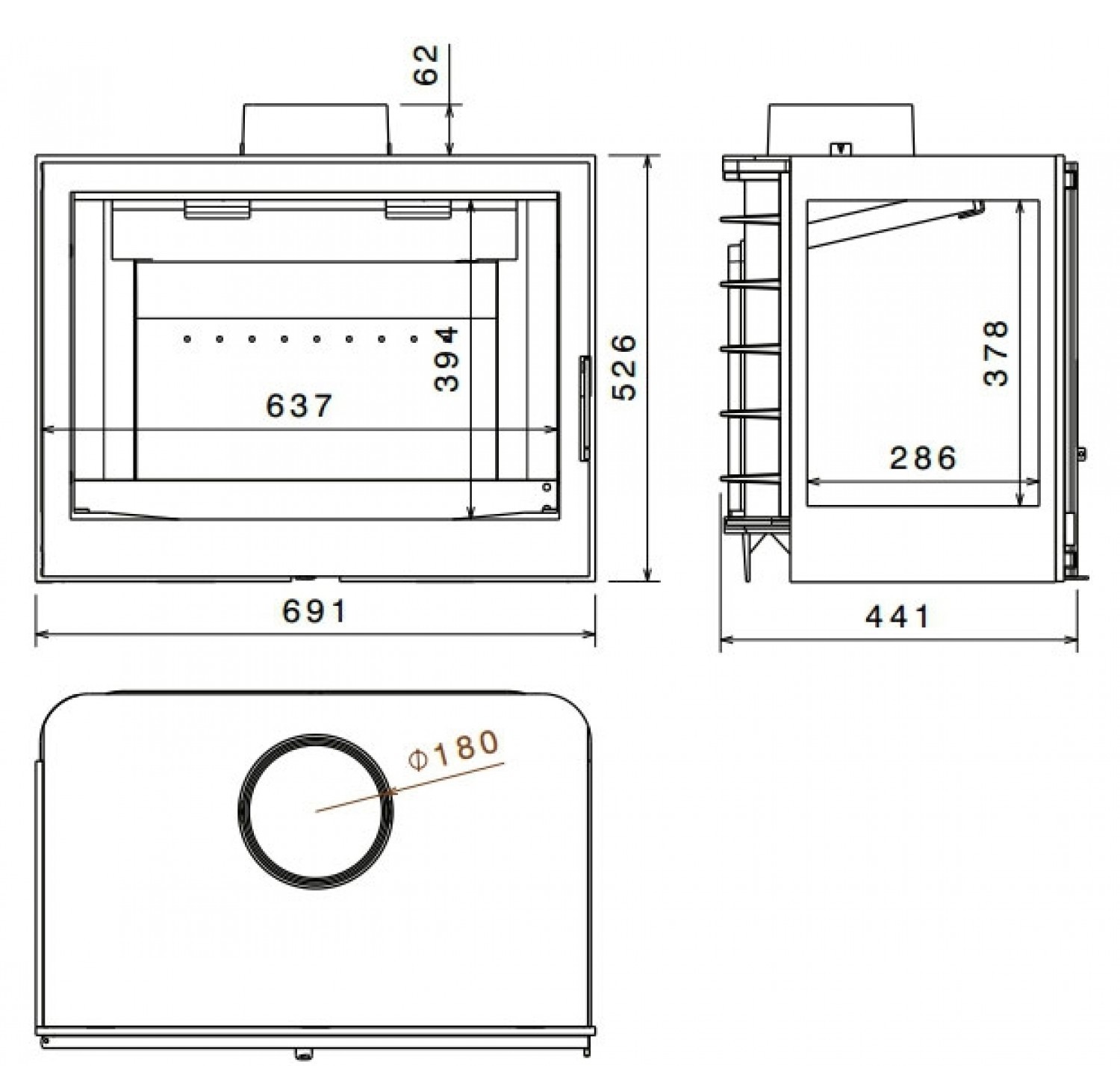 Каминная топка без дымосборника с левым боковым стеклом.