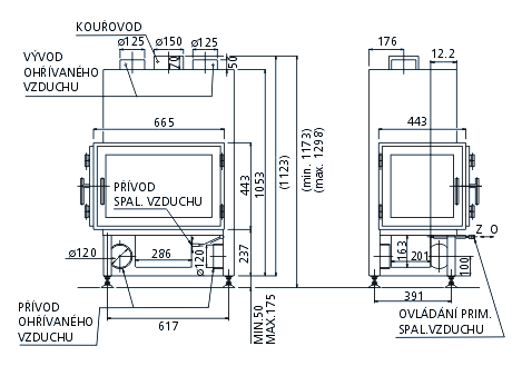 - Диаметр дымохода, (мм) 150