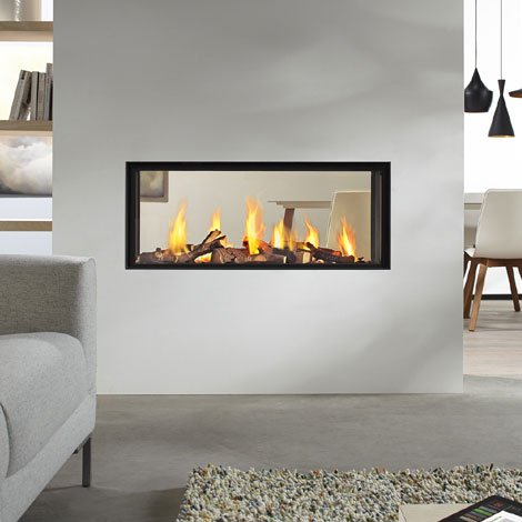 Каминная топка позволяет наслаждаться огнем с двух сторон и, таким образом, идеально подойдет в качестве разделителя комнаты. Этоозначает, что вы можете насладиться атмосферой и теплом как в гостиной, так и, например, в столовой. Уникальная горелка равномерно распределяет огонь по всей ширине и глубине топки.