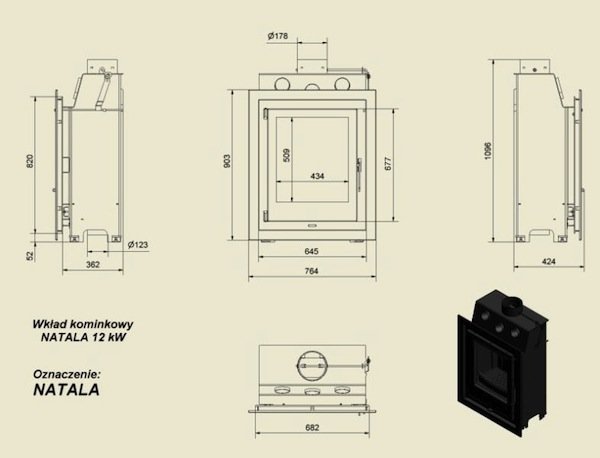 Модель NATALA относится к топкам высокой мощности, выполненным из термпоупорной стали и чугуна класса 200.
