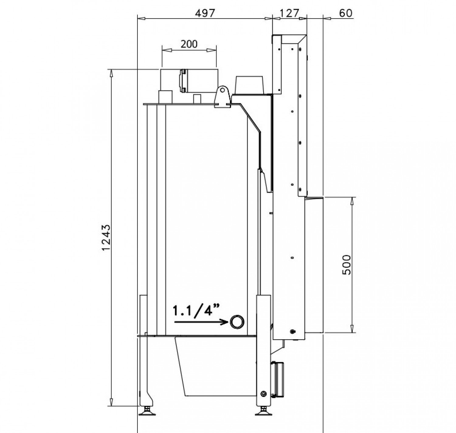 Стальная топка с водяным контуром. С открытым гидроконтуром. Дверца с подъемом вверх.