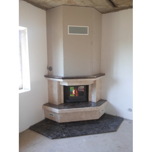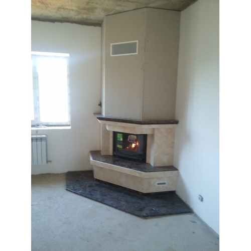 Нашими специалистами был произведен монтаж каминной топки Invicta Призматик Контргруз 700 и облицовки, сделанной на заказ.