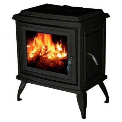 Печь с фронтальной и боковой дверцами, имеет систему Чистое стекло, ручка дверцы не нагревается в процессе топки. Печь окрашенная, цвет - угольно-черный. Без зольника.