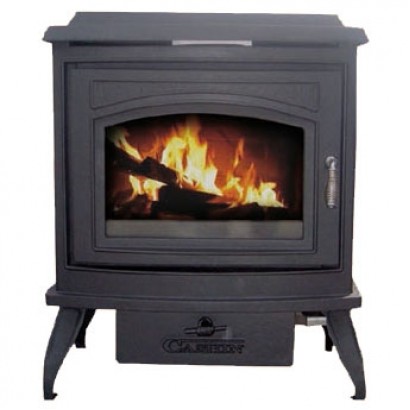 Отопительная печь с фронтальной дверью, имеет систему Чистое стекло, ручка дверцы не нагревается в процессе топки. Печь окрашенная, цвет - угольно-черный.