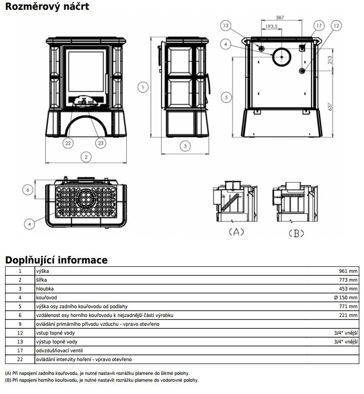 Печь камин ABX BAVARIA K (6,9 кВт в воду), кафельный цоколь – вставка КОМБО (чугун + сталь) – это изразцовая европейская модель, предназначенная для работы на сухих дровах лиственных пород дерева или брикетах. Чешская компания ABX выпускает камины и печи с 1993 года, её продукция в основном представлена на рынках Европы и США, теперь камины ABX доступны и в России качество исполнения продукции компании ABX держится на высочайшем уровне. Топка печи выполнена из долговечной и высококачественной стали, а дверца из чугуна. Огнеупорное стекло (стеклокерамика) выдерживает температуру до 750 градусов. Печью камином можно отопить помещение от 100 до 248 кубических метров, тепло в помещение поступает через стекло дверцы прямым излучением тепла и посредством конвенции, холодный воздух поступает снизу печи и, проходя через пространство между топкой и облицовкой, выходит через конвекционные отверстия уже горячим. Вес печи в 172 кг, позволяет устанавливать её без отдельного фундамента. Топка печи имеет систему вторичного дожига. Уменьшая приток воздуха, можно перевести печь в режим длительного горения, увеличив время горения дров. Дровяная кафельная печь с водяной рубашкой (или контуром) предназначена для отопления загородного дома за счет циркуляции горячей воды (или антифриза). Печь подсоединяется к батареям центрального отопления. Работает система следующим образом: теплоноситель нагревается в топочной камере, далее «выталкивается» в трубы, а через них в радиаторы, проходит по всему дому, отдавая энергию, затем уже в остывшем виде возвращается обратно в печь камин. Для лучшей циркуляции воды (антифриза) по закольцованной системе используется специальный насос, для защиты оборудования от последствий перегрева - расширительный бак. Изразцовые печи проектируют и изготавливают вручную на заводах компании ABX. Облицовка изразцовых печей экологически чиста и надежна, сохраняет тепло более пяти часов после прогорания дров.Печь камин ABX BAVARIA K (6,9 кВт в воду), кафельный цоколь – вставка КОМБО (чугун + сталь), облицована красивейшим кафелем выдерживающем высокие температуры и очень долговечным, а различные варианты цветовых исполнений камина позволят подобрать тот вариант, который наиболее гармонично впишется в интерьер. Печь камин настолько качественно сделана, что компания производитель ABX даёт на неё гарантию 5 лет.