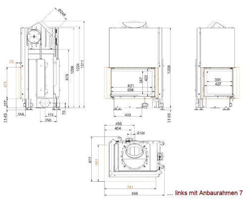 Топка Architektur-Kamin Eck 45/67/44 с подъмом, с одним стеклом.