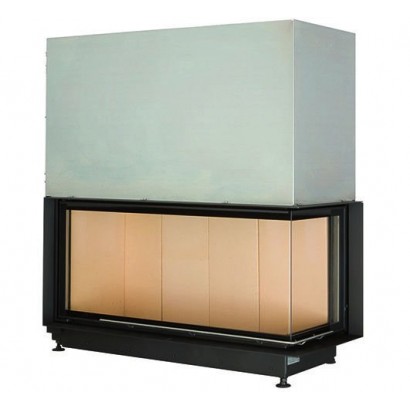 Угловая каминная топка с Г-образным стеклом. Боковое стекло слева. Топочная камера футерована шамотом. Подъёмный механизм двери (система Easy-Lift). Ширина дверки 1167+449 мм. Высота дверки 503 мм. Возможно подключение воздуха извне.