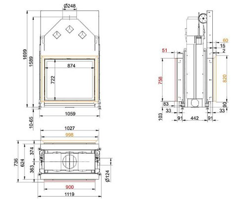 Топка SK Tunnel 75/90 с одним прямым стеклом.
