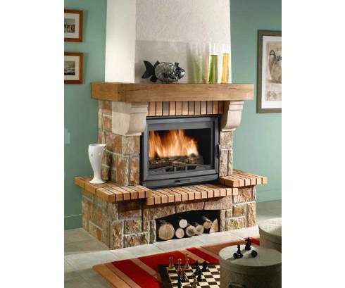 Топка на фото - D70. Ссылки на подходящие к данному камину топки указаны справа под техническими характеристиками.