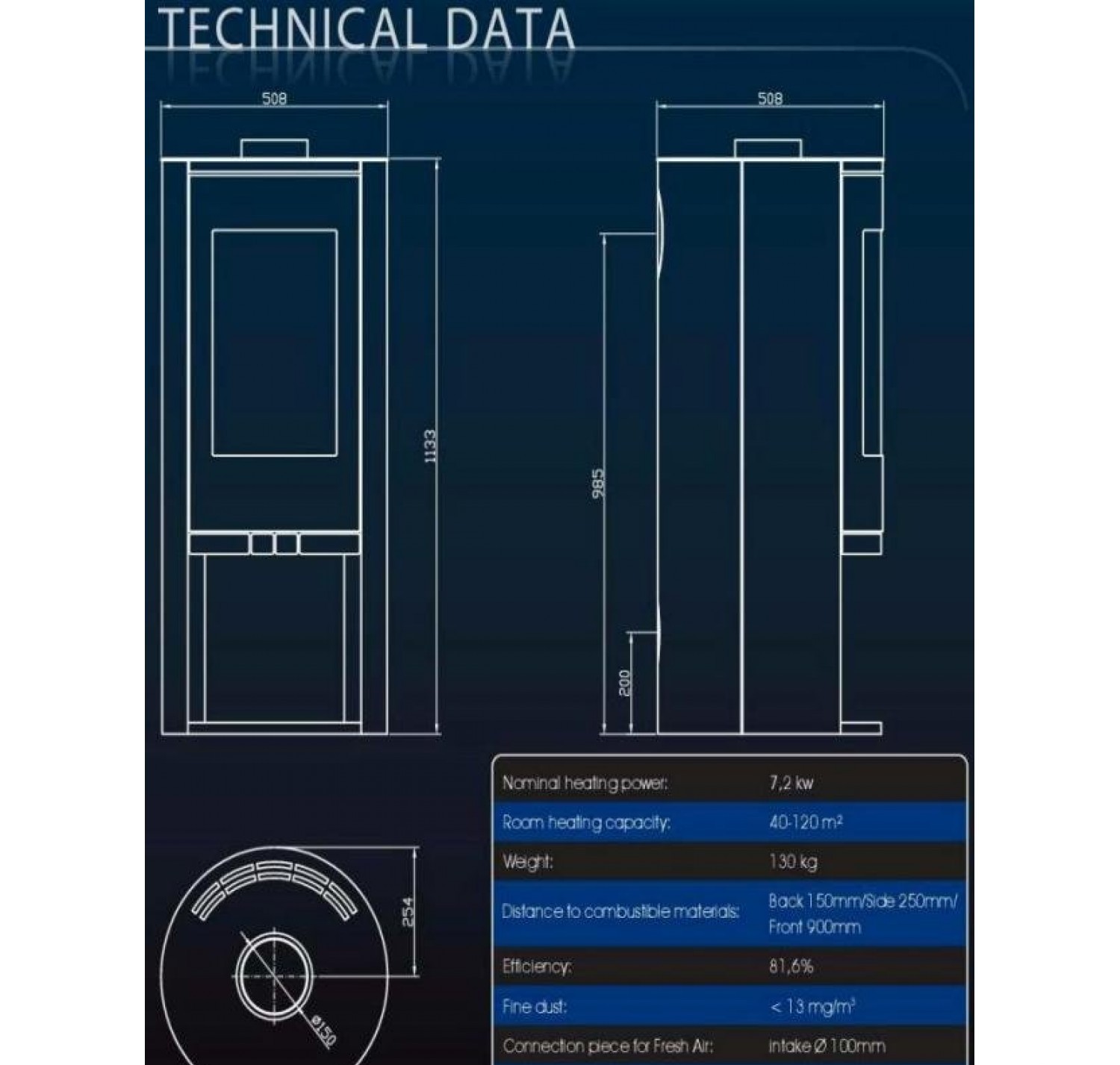 - Диаметр дымохода, (мм) 150 мм.