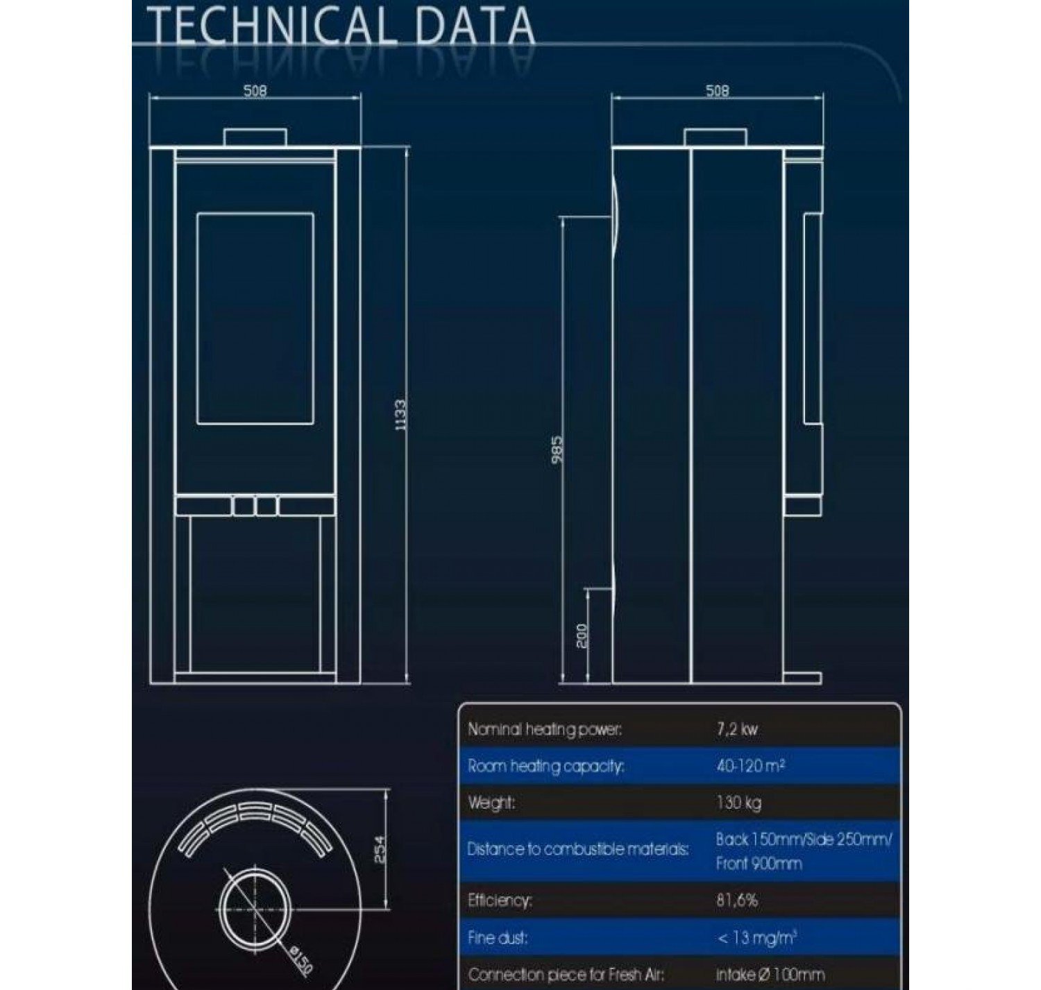 • Диаметр дымохода, (мм)