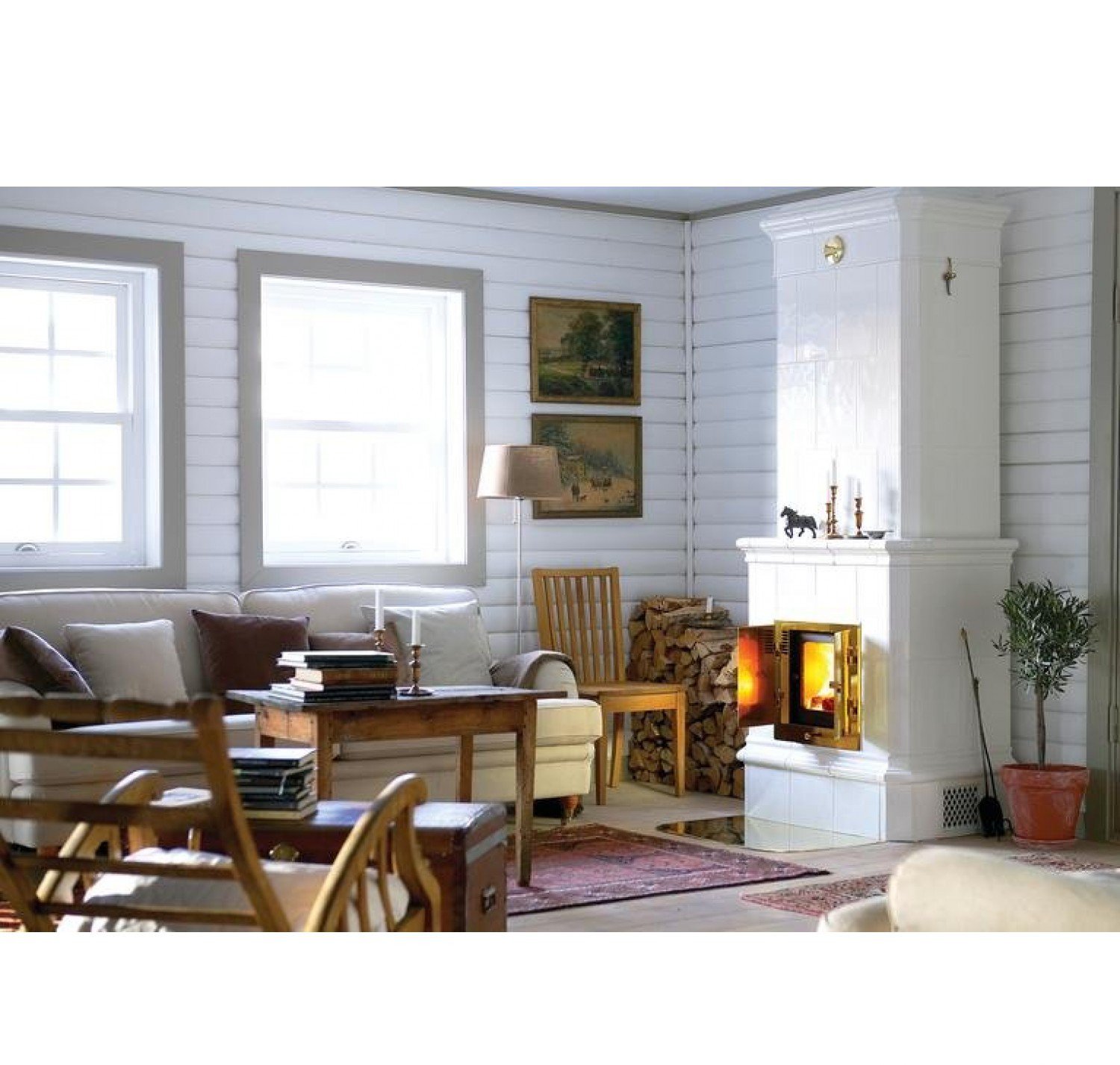 Коэффициент полезного действия, или доля используемой энергии по отношению к полученной при сгорании дров энергии, составляет целых 87%. Печи оборудуются уникальной секцией горячего воздуха с выводом тепла на фронтальную сторону печи, что ускоряет нагрев помещения. Секция горячего воздуха может дополняться вентилятором, который равномерно распределяет тепло по помещениям. В доме с принудительной вентиляцией рекомендуется подключать канал подвода воздуха снаружи напрямую к печи.