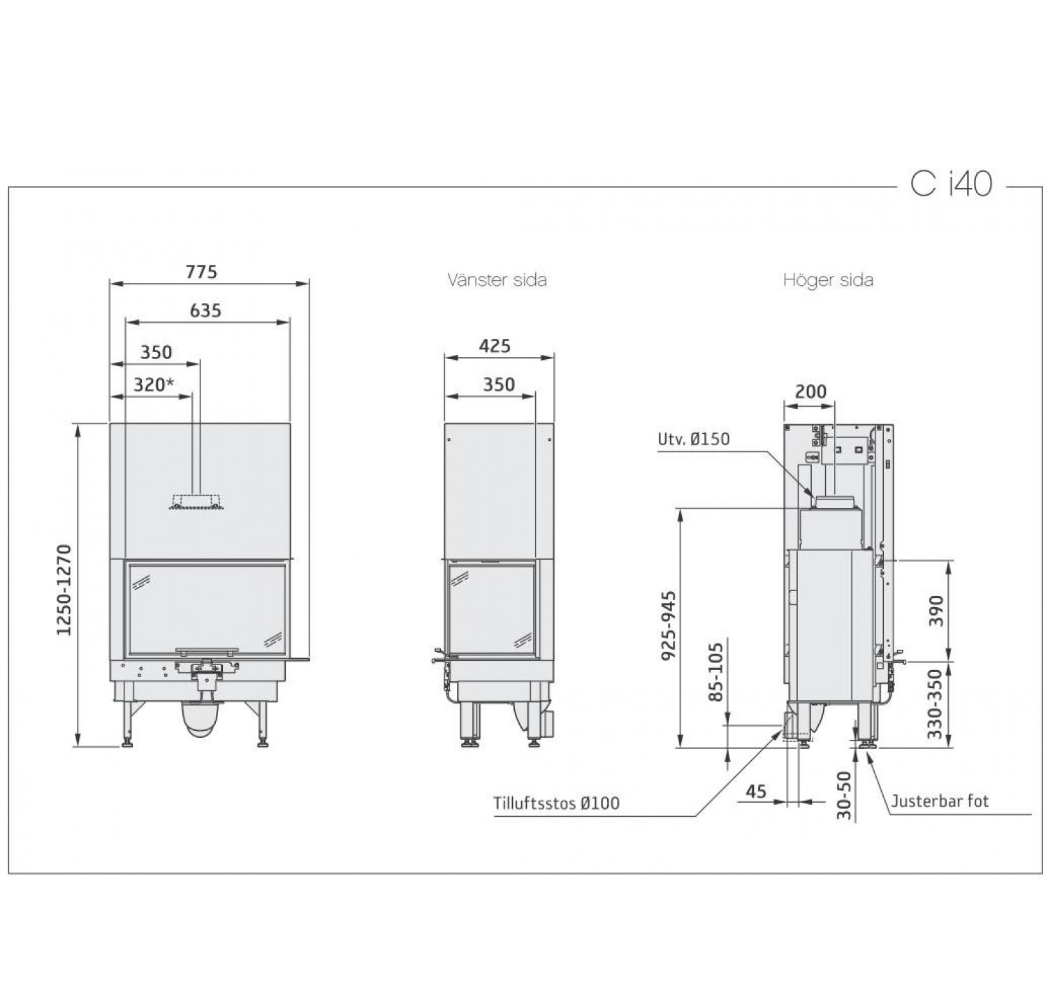Contura i40, стекло cправа