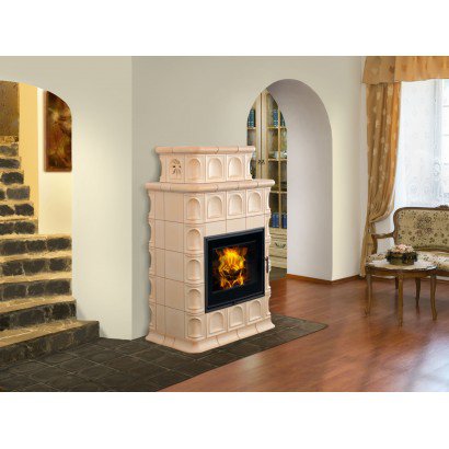 Каминная печь «Baracca» на фотографии имеет керамическую облицовку.