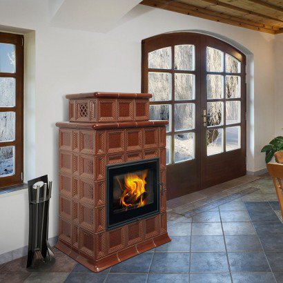 Каминная печь «Baracca» на фотографии имеет керамическую облицовку.
