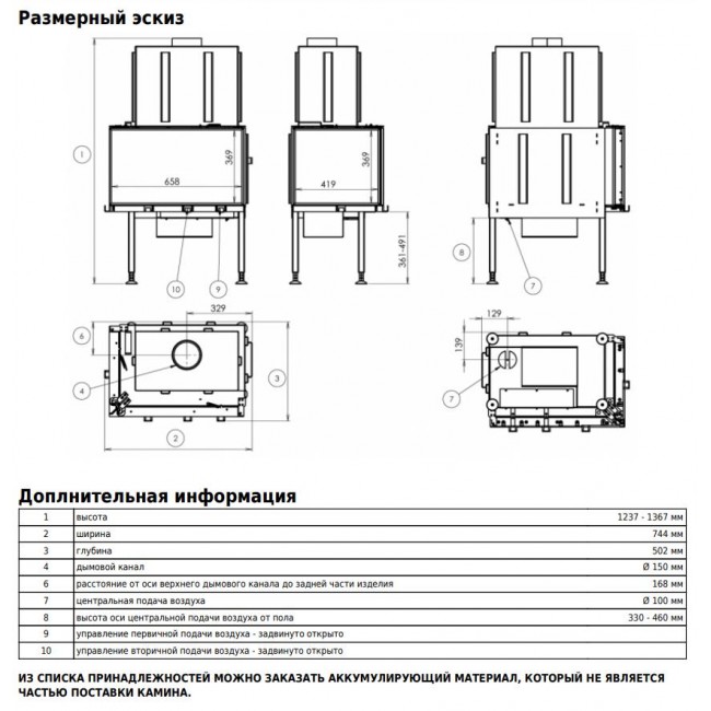 - Топка подключается к воздуховоду диаметром 100 мм.