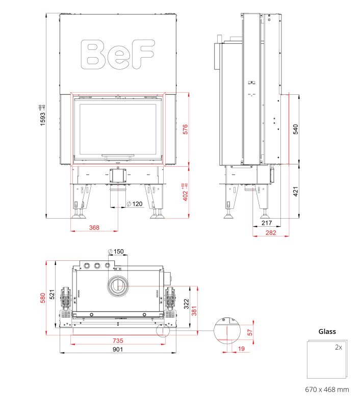 - Диаметр дымохода, (мм) 150