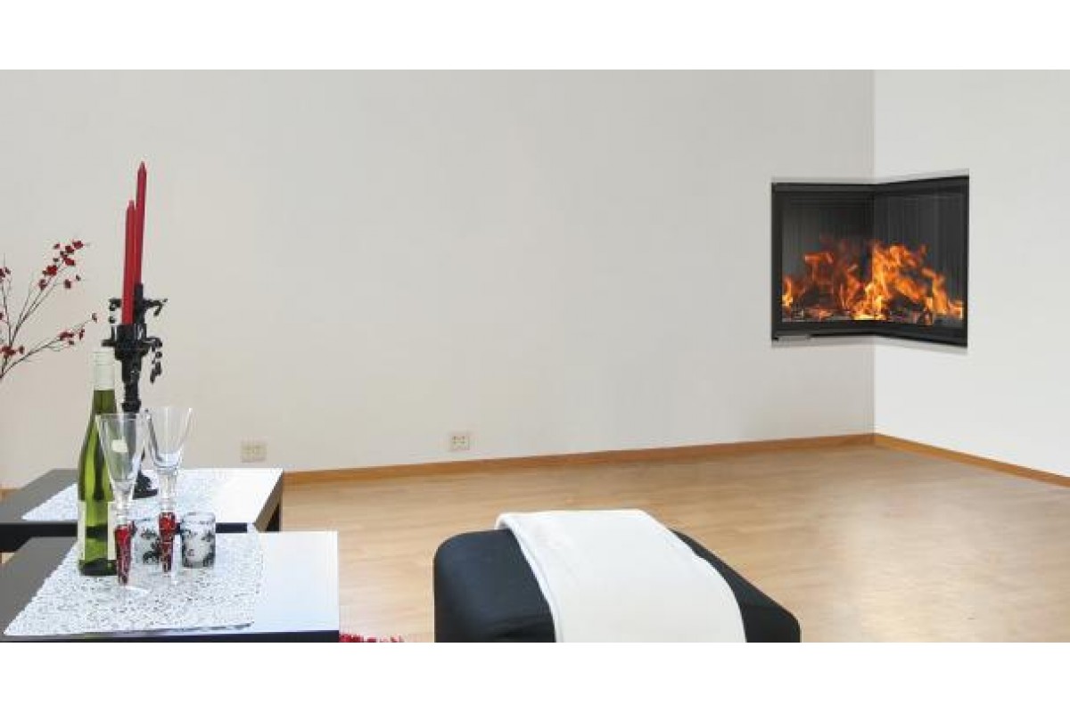 • Топка оснащена регулировкой подачи первичного и вторичного воздуха, а также системой самоочистки стекла, благодаря которой стекло всегда остается чистым. Она имеет прямое стекло, дверь открывается в сторону.