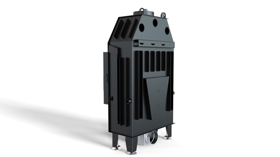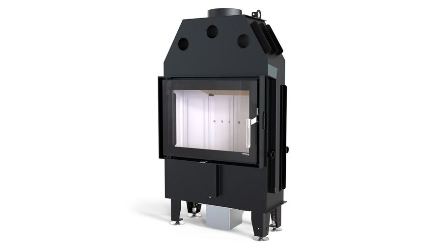 Изготовлена из стали с порошковым покрытием и имеет эффективность нагрева 78 %. Устройство с центральной подачей воздуха снаружи и возможностью ее регулировки. Специальная конструкция на трубе для подачи воздуха в топку, дает возможность изменить направление подачи воздуха на боковое. Плотно размещенные радиаторы способствуют передачи больше тепла окружающей среде, а воздуховоды повышают эффективность камина.