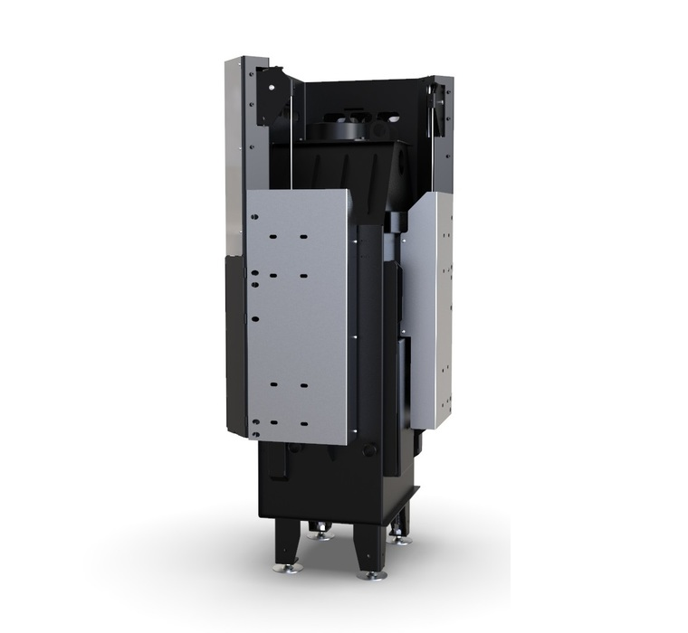 Угловая дверца со стеклом имеет большие размеры, открывается с помощью подъемного механизма и герметично закрывается. Благодаря системе вторичного дожига агрегат характеризуется длительным горением топлива на одной закладке.