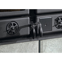 Регулировка шиберной заслонки позволяет контролировать интенсивность процесса горения и тягу в дымоходе. Блокиратор каминной дверцы ограничивает её открытие при закрытом положении шибера, что исключает возможность попадания дымовых газов в помещение.