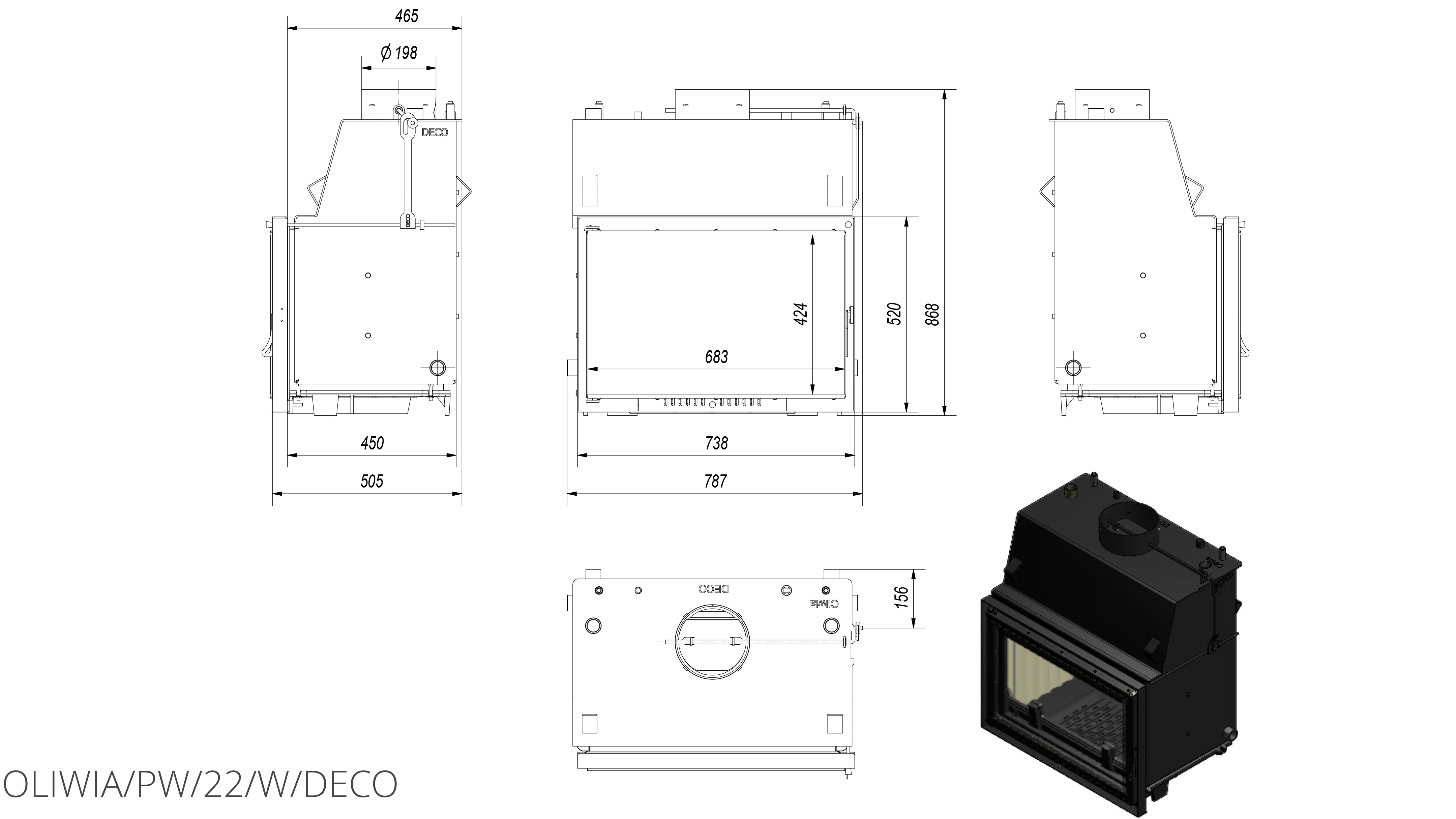 Каминная топка с водяным контуром Kratki Oliwia/PW/22/W/Deco (змеевик), в которой используемые технологии и материалы создают эффективную, экономичную и экологическую топку с высокой эффективностью.
