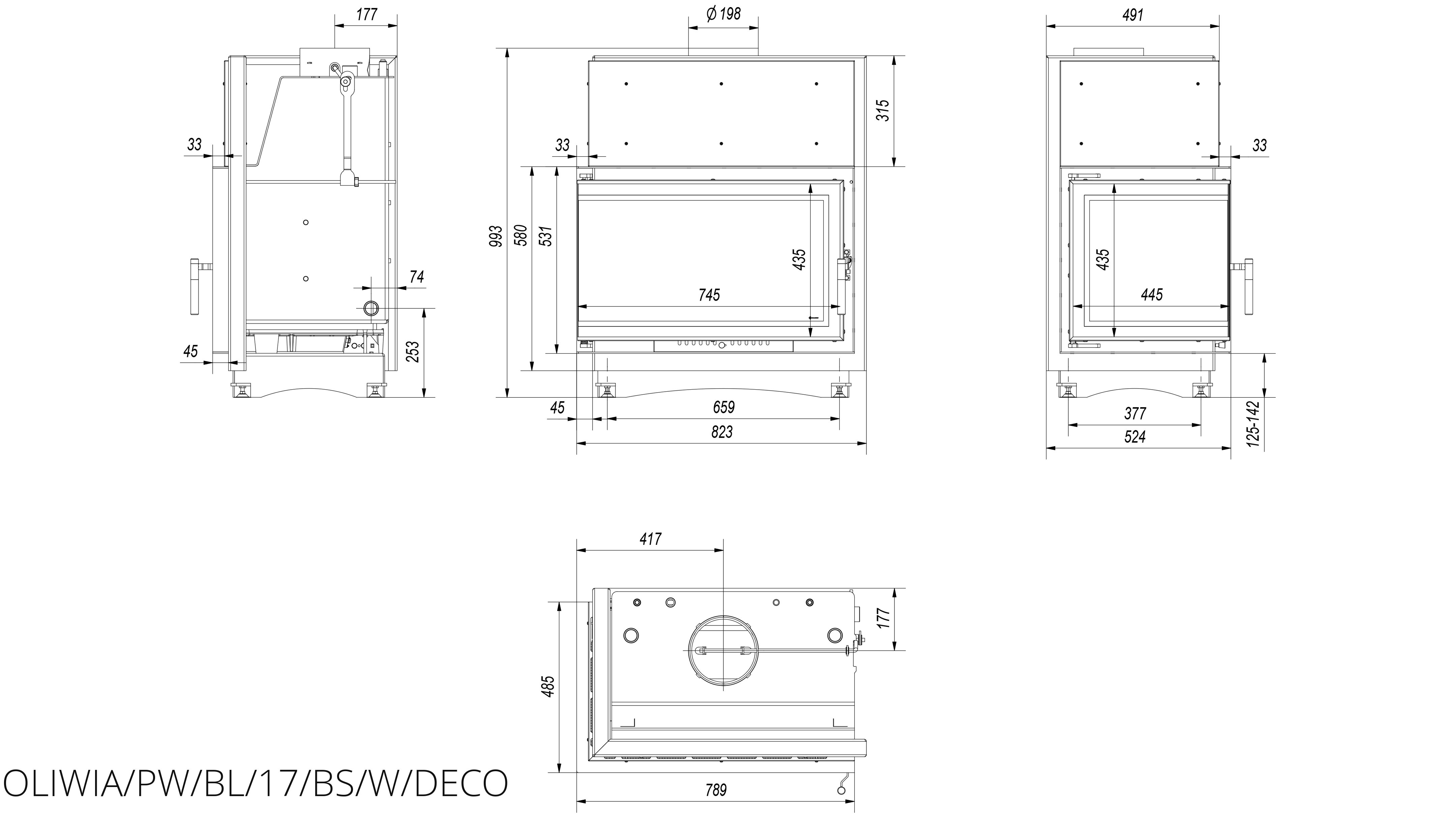 Каминная топка Kratki Oliwia/PW/BL/17/BS/W/Deco