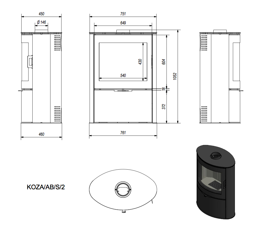 - Диаметр дымохода, (мм) 150
