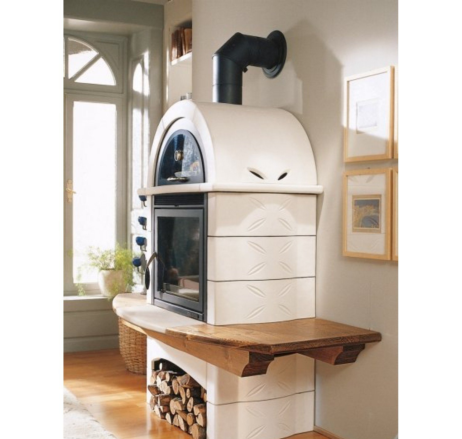 С помощью этой модели Вы можете не только решить проблему отопления Вашего дома, но и не беспокоится о горячем обеде, так как в каминный комплект входит вместительный духовой шкаф. Печь камин относится к отопительным приборам, работающим на дровах и способен при мощности в 9 кВт отапливать до 258 куб. метров жилого пространства. Falo 1L выполнен с учетом новейших каминных технологий и включает системы «двойного дожига» и «чистого стекла». Это позволяет не только добиваться высокой тепловой эффективности, но и поддерживать в чистоте стеклокерамическое окно топочной камеры. Модель представлена в сине-бирюзовом цвете и может удачно комбинироваться с мебелью скандинавского, классического стиля или стиля модерн.
