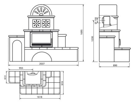 - Диаметр дымохода, (мм) 150