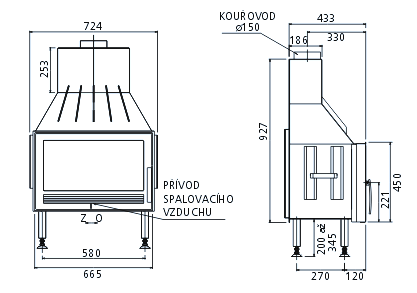 - Диаметр дымохода, (мм) 150