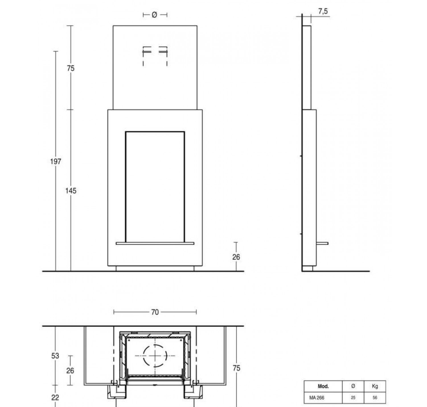 Облицовка с цельной фронтальной панелью из майолики ручной работы, которая придает камину уникальный эффект гладкой отделки, доступна в широком ассортименте цветов. Основание, рамка и кожух из стали с отделкой из черной эмали (на фотографии изображена модель из майолики Lino, высокая дровяная топка MA 266 SL).