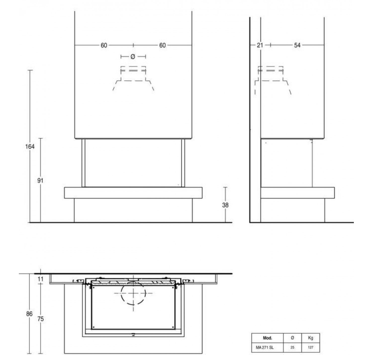Облицовка с основанием изготовлены из большого цельного блока майолики ручной работы доступны в широком ассортименте цветов. Мраморная опора основания. Дровяная топка с тремя панелями из стекла придает пламени красивый вид (на фотографии изображена модель из майолики Sahara, дровяная топка MA 271 SL).