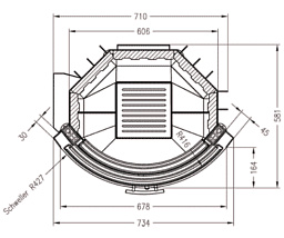 Оригинальный продукт с полукруглыми элементами из майолики украшен тонким барельефом. Превосходная майолика ручной работы может быть заказана в любом цвете из палитры Piazzetta. Черная стальная опора основания. Обрамление и кожух из стали с отделкой из черной эмали. Камин оснащен эксклюзивным электронным механизмом подъема и опускания стекла (на фотографии изображена модель из майолики Bianco Antico, дровяная топка M360 T).