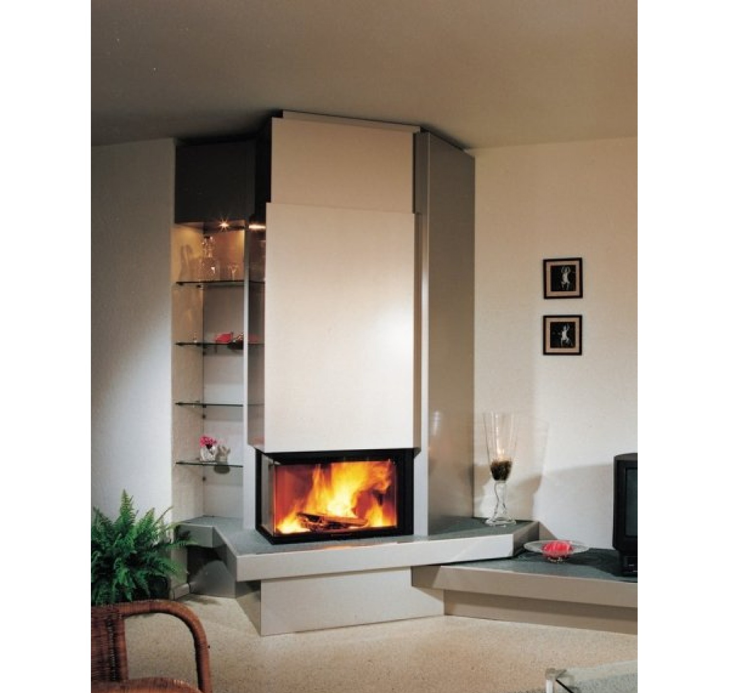 Модель будет особенно удачна расположена в каминных облицовках углового или пристенно-углового варианта, требующих обзора с двух сторон.